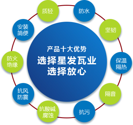 公司主要產(chǎn)品有《星發(fā)牌》合成樹(shù)脂瓦、APVC防腐耐候復(fù)合瓦、APVC發(fā)泡隔熱瓦、PVC半透明瓦、PVC防腐隔熱瓦、PVC防腐瓦、PVC防腐平板、PVC條紋板和ASA/PVC超耐候復(fù)合瓦等產(chǎn)品。產(chǎn)品一經(jīng)推出,已被廣泛應(yīng)用于國(guó)內(nèi)各類平改坡項(xiàng)目和大型工業(yè)項(xiàng)目,遠(yuǎn)銷歐洲、亞洲、美洲和非洲等國(guó)外市場(chǎng),還獲選為廣州亞運(yùn)會(huì)、深圳大運(yùn)會(huì)、四川災(zāi)后重建等工程項(xiàng)目的應(yīng)用產(chǎn)品。公司在不斷創(chuàng)新和改革的基礎(chǔ)上,力求以更好的產(chǎn)品、優(yōu)良的服務(wù),用心、專心服務(wù)好每一個(gè)客戶。